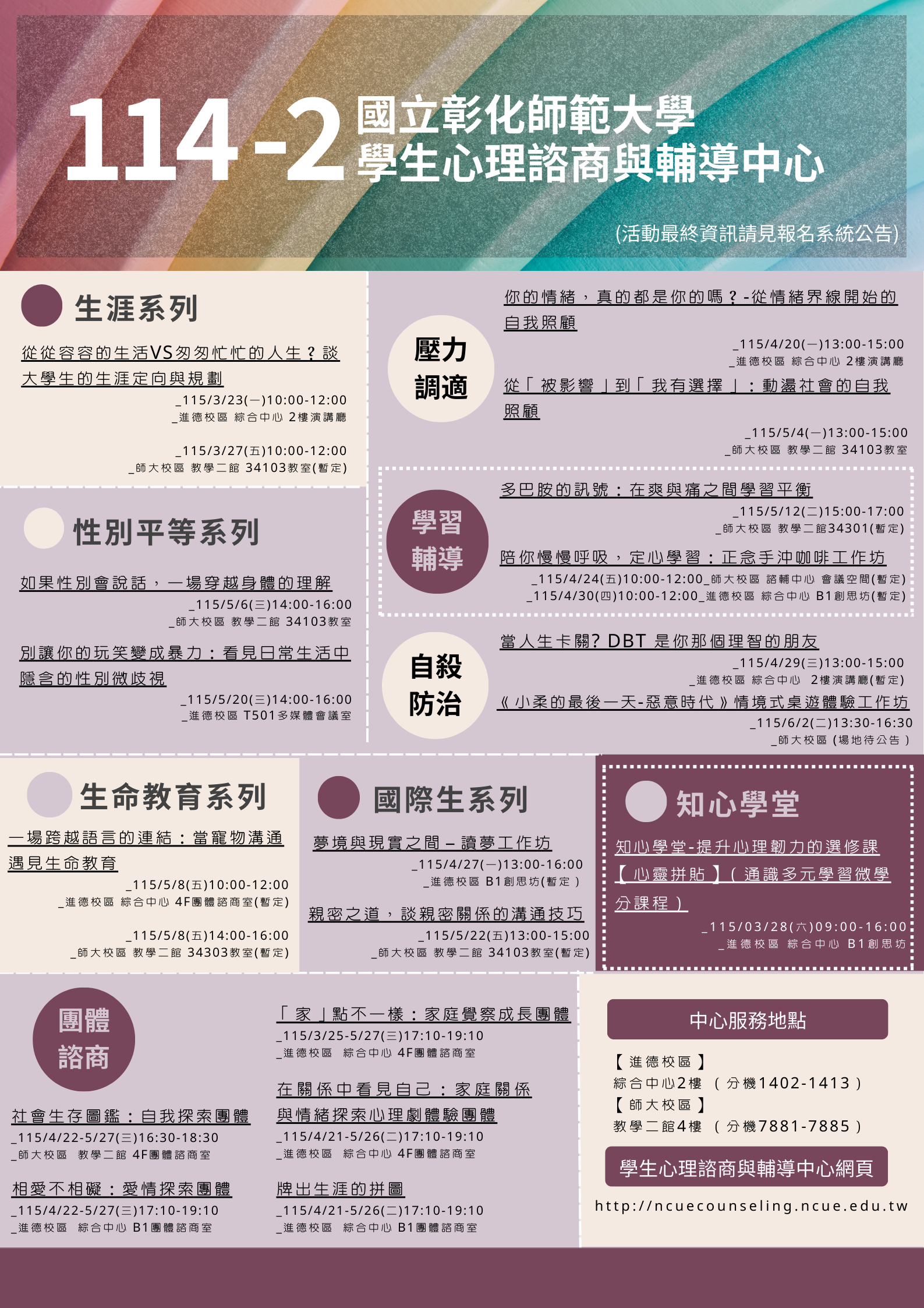 【公告】114學年度第二學期 諮輔中心活動